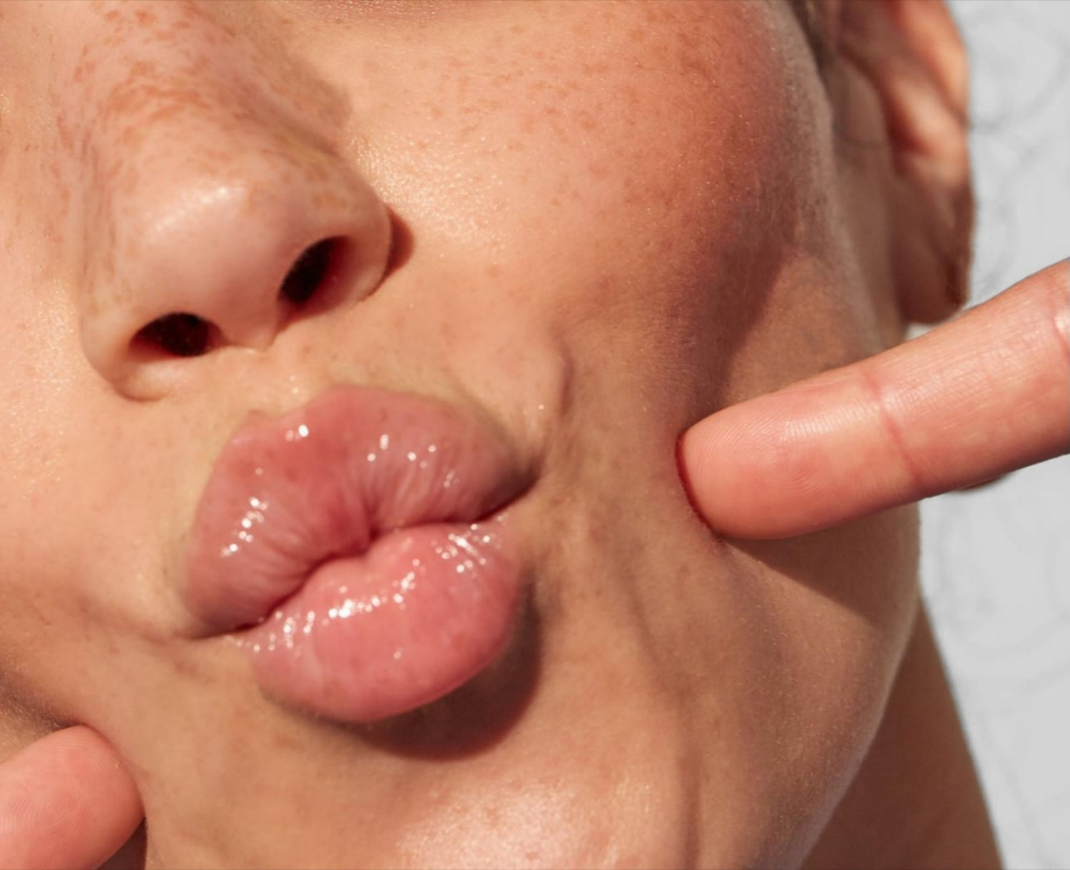 Two essentials in one: faux freckles + lip shimmer for a fresh, natural look.